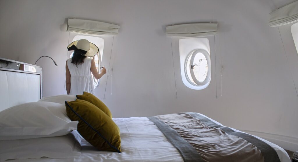 A l’apogée du raffinement, la Suite Prestige dispose d’un patio intérieur et d’un espace salon, séparé de la chambre en rotonde.